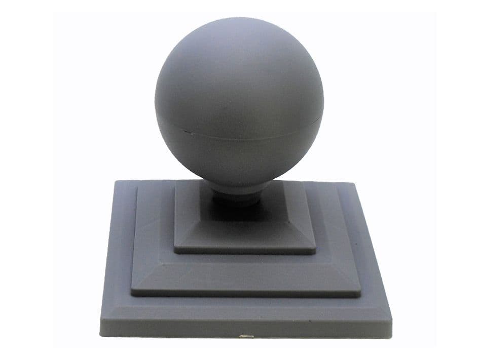 Fence Finial, Sphere/Round Shape & 4" Square Fence Post Cap Set. Rot Proof, UK Made.